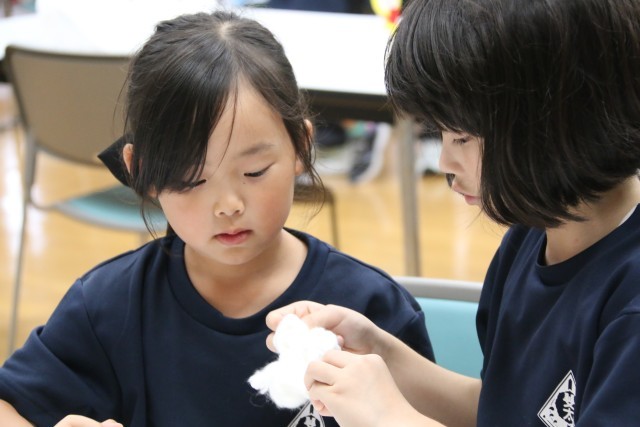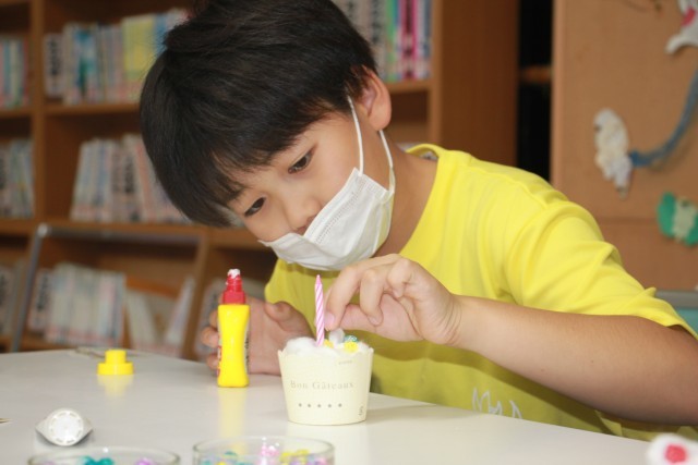 また、『150個のバースデーケーキを作って、式典の会場にならべよう!』と、作りたい子どもたちが昼休みに集まって、「100個超えたよー」「きれいだね」と、わいわい楽しくお話しながら活動しています。異学年で教え合ったり、一人3個作ったり、150個めざして…ついに17日(金)に150個完成しました。