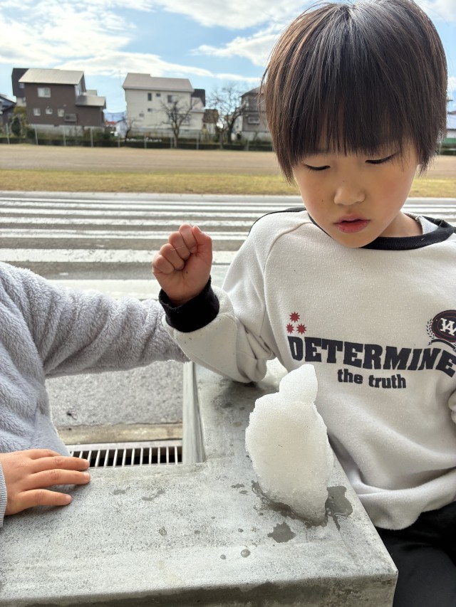 手で触って「こんなに冷たいのに、溶けたのかあ」「いや、温かいのかも」とあれこれ話し始めました。