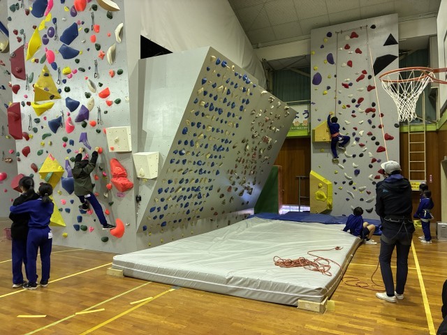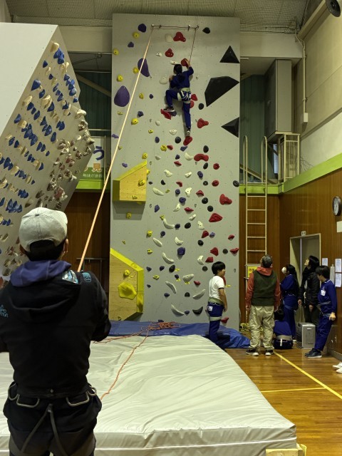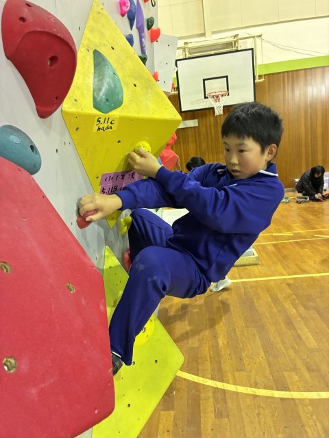 講演会前に、全校児童で「クライミング」の体験をしましたが、今回5,6年生が、修太さんの得意分野「リード」に挑戦しました。場所は、板倉クライミングセンターです。田中修太さんのご両親がコーチングしてくださいました。