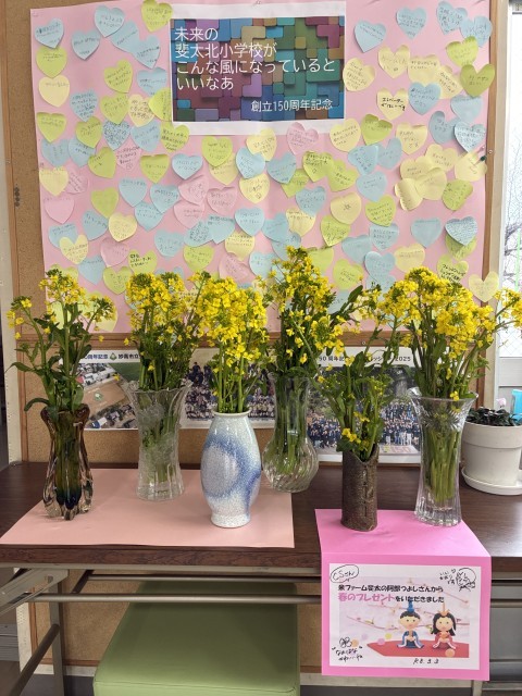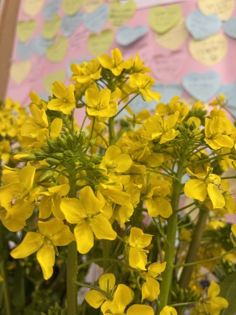 朝、斐太北小学校のCSの阿部さんから、菜の花の花束をいただきました。