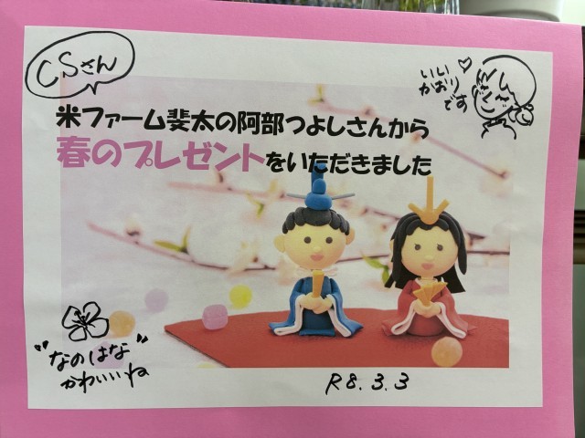 今日は3月3日。桃の節句です。廊下に春のいい香りがしました。