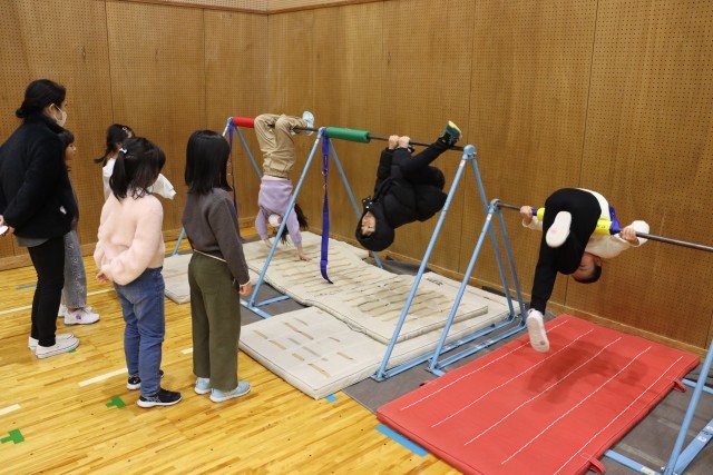 昼休み、子どもたちは寒い体育館の中で、様々な活動を行っています。