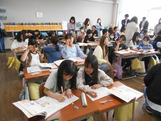 5年生も「国語」。自分の名前を使って、自己紹介を考えました。名前が長い人はたいへんでしたね。
