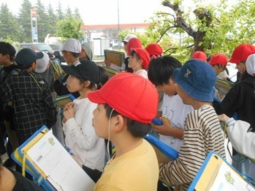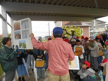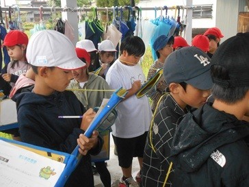 あいにくの雨の中でしたが、子どもたちはしっかり話を聞き、メモを取って学習していました。
