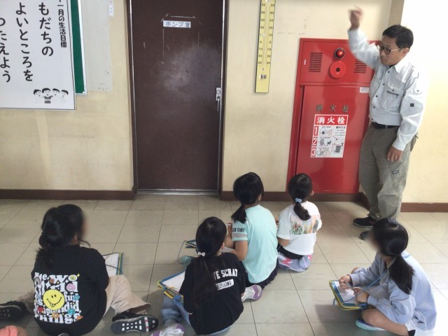 社会科「地域の安全を守る」で、火事から人々の安全を守る仕事や設備について学習をしています。校内を歩き、消火器や消火栓などの場所を調べ、「こんなところにもあったんだ!」と驚く子どもたちの声がたくさん聞かれました。また、松原用務員さんからお話を伺い、火災を防ぐために日頃から消火設備の点検や安全管理をしてくださっていることを知りました。活動を通して、「火事を防ぐための工夫が身近にあること」「多くの人が安全を守ってくれていること」に気付くことができました。