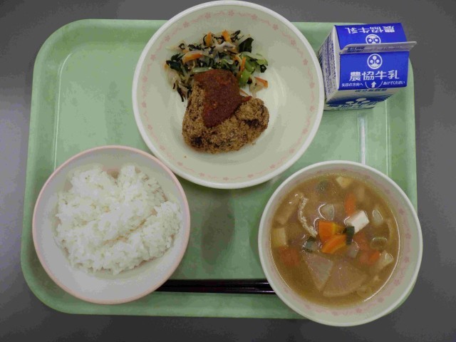 市政20周年記念献立②(10月23日) 公開日 2025/10/26 更新日 2025/10/26 学校紹介 10月23日(木)の給食は、「市政20周年記念献立その2」が提供されました。 主食は、ごはん 主菜は、「妙高市民の心メンチカツかんずりソース」 副菜は、「磯ゴマ酢あえ」 汁物は、「妙高秋野菜の味噌汁」というメニューでした。